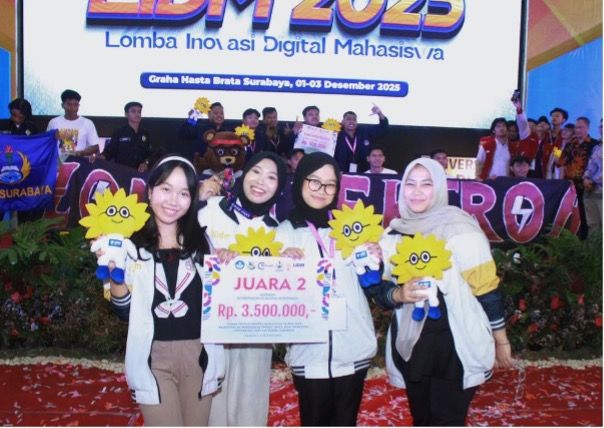 Unesa.ac.id., SURABAYA—Mahasiswa Universitas Negeri Surabaya (Unesa) kembali menunjukkan taringnya dalam gelaran Lomba Inovasi Digital Mahasiswa (LIDM) 2025, yang dilaksanakan Kementerian Pendidikan Tinggi, Sains dan Teknologi (Kemdiktisaintek) melalui Direktorat Belmawa dan Puspresnas di Universitas PGRI Adi Buana Surabaya pada 1-3 Desember 2025.
