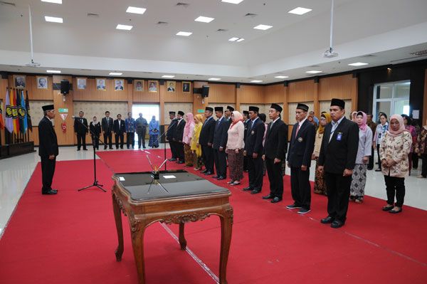 Unesa.Ac.Id, Surabaya-- Upaya penyegaran dilakukan Unesa melalui pergantian sejumlah Kabag dan Kasubag selingkung Unesa. Kamis, 21 Desember 2017, para pejabat itu dilantik langsung oleh Rektor Unesa, Prof. Dr. Warsono, M.S di auditorium Gedung Pendidikan lantai 11.