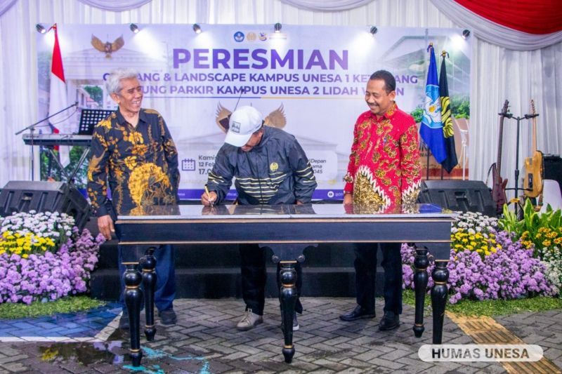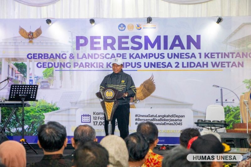 Unesa.ac.id. SURABAYA—Universitas Negeri Surabaya (Unesa) terus bertransformasi dengan melakukan peningkatan signifikan pada sarana dan prasarana kampus. Sebagai langkah nyata dalam meningkatkan kualitas ekosistem kampus, Unesa meresmikan tiga fasilitas baru yang meliputi gerbang utama dan penataan landscape Kampus 1 Ketintang, serta gedung parkir bertingkat di Kampus 2 Lidah Wetan.